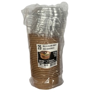 | The 750 ml brown kraft salad bowls are increasingly valued for their eco-friendly qualities and practicality. This specific model, with dimensions of 150x130x60 mm, is especially appreciated for serving salads, pokés, or pasta dishes. Here’s why this product is essential for food service professionals: |